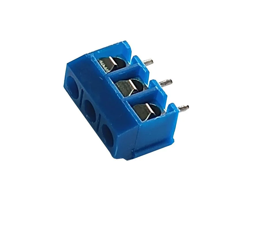 Conector Borne KRE 3 Vias serve para utilização em equipamentos eletrônicos, com 3 pinos para soldagem em placa de circuito impresso e parafusos para conexão nos terminais.