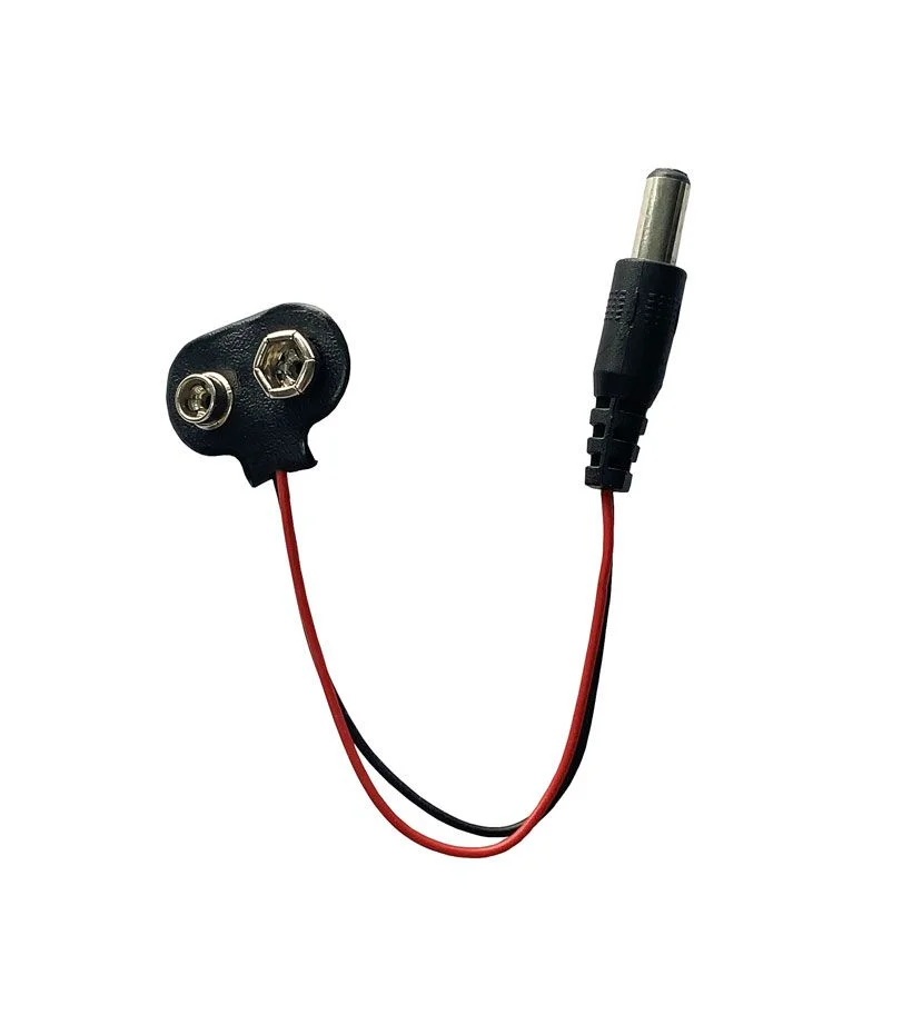 Conector para alimentação por bateria 9V com cabos preto e vermelho de 28AWG, com plug P4 ideal para alimentar placas Arduino