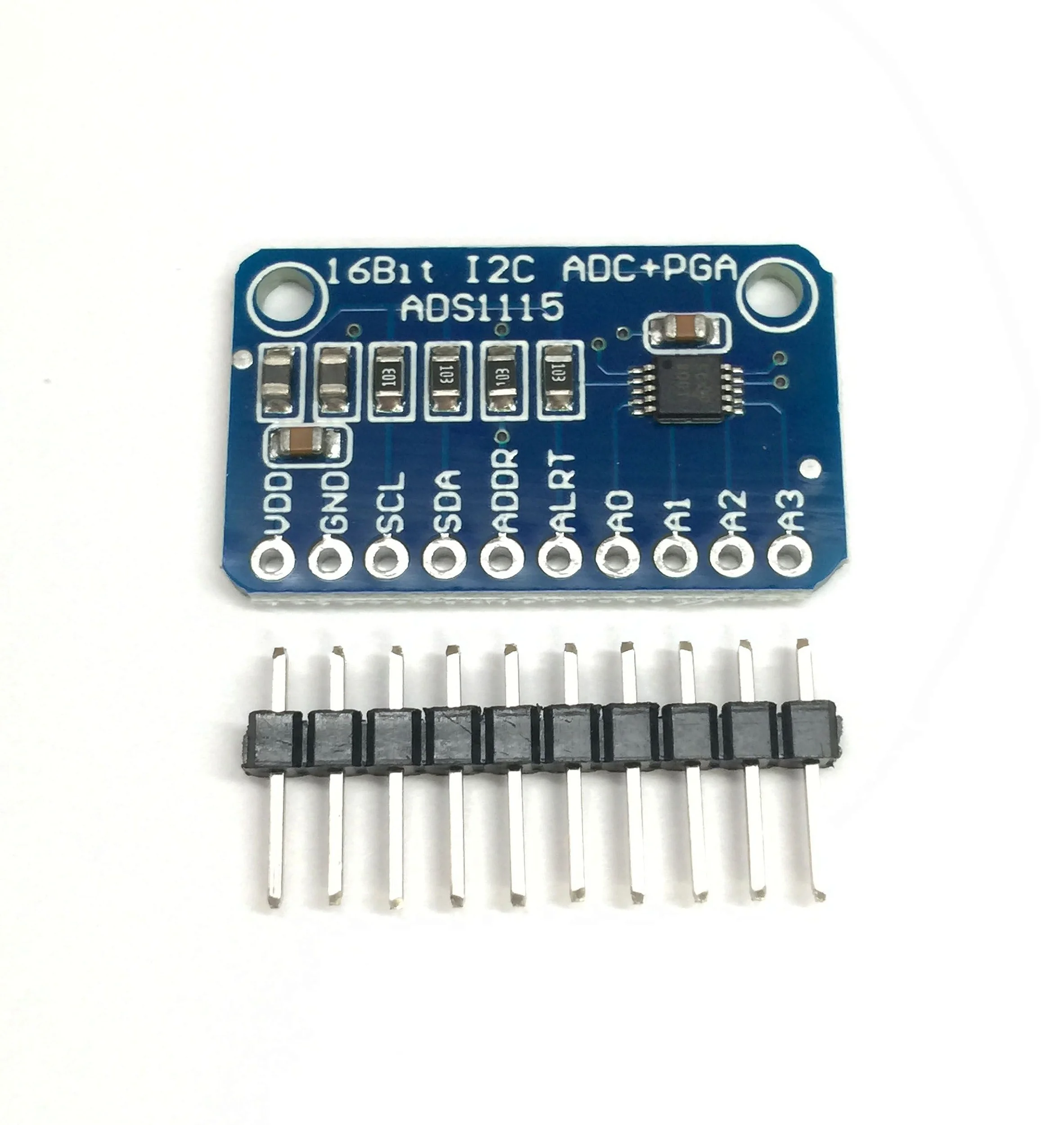 O conversor analógico digital 4 canais ADS1115 é um componente indicado para ocasiões onde o microcontrolador não possui um conversor analógico->digital embutido, ou quando é necessário maior resolução de leitura.