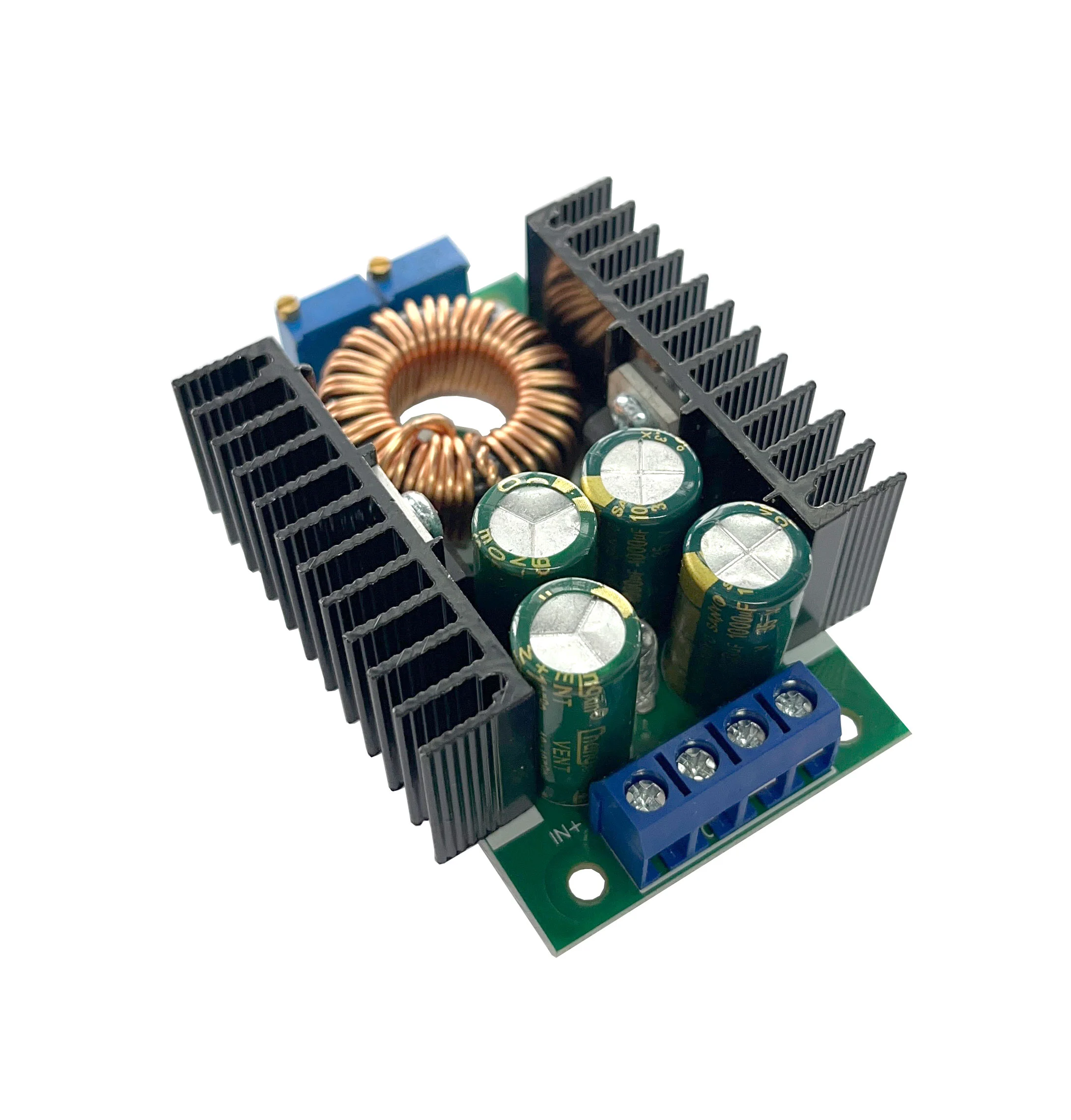 Para operação, basta fornecer tensão DC dentro da faixa especificada e ajustar a saída através do potenciômetro integrado. O módulo conta com dissipadores de calor que auxiliam na refrigeração durante altas cargas.